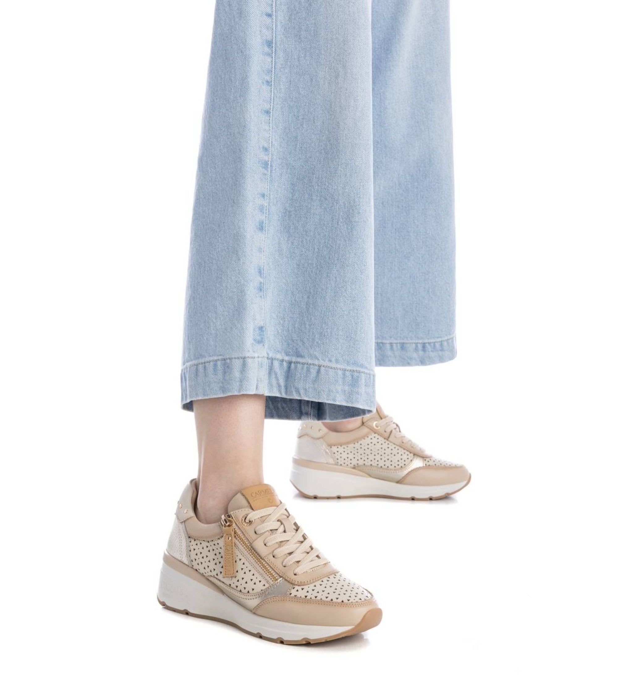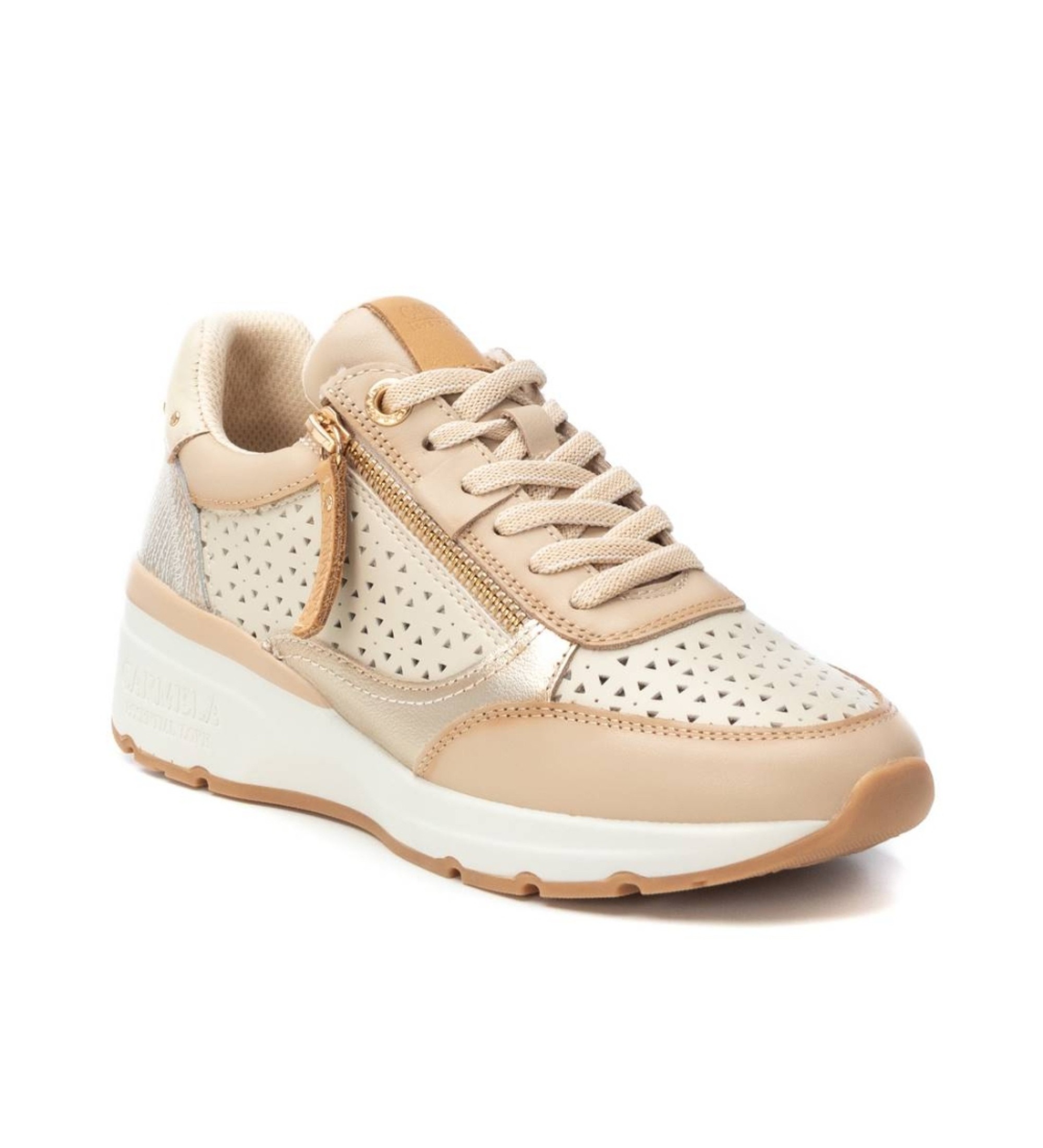 Beautiful Classic Leather Trainer From Carmela Women's trainers, Carmela brand. Made in high quality leather . With removable insole. Side zip fastening and adjustable laces for better grip and fit. Comfortable 5 cm wedge with non-slip rubber sole.