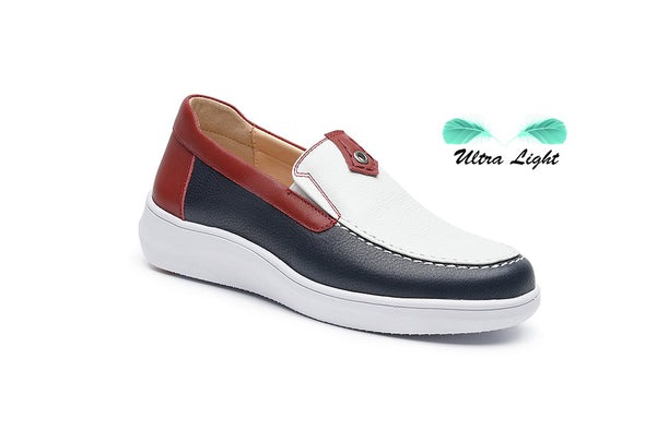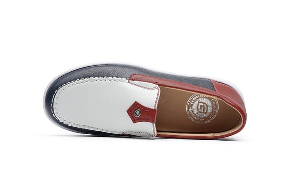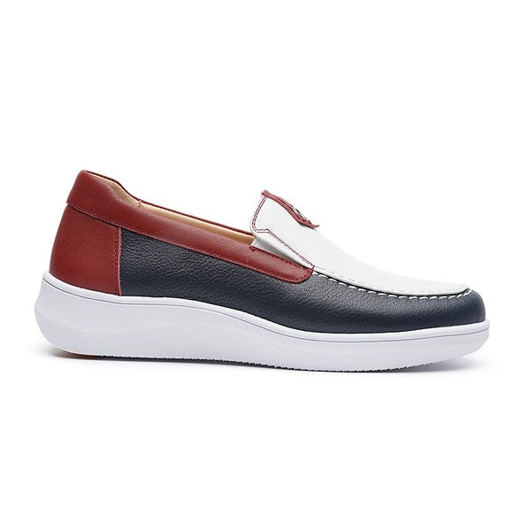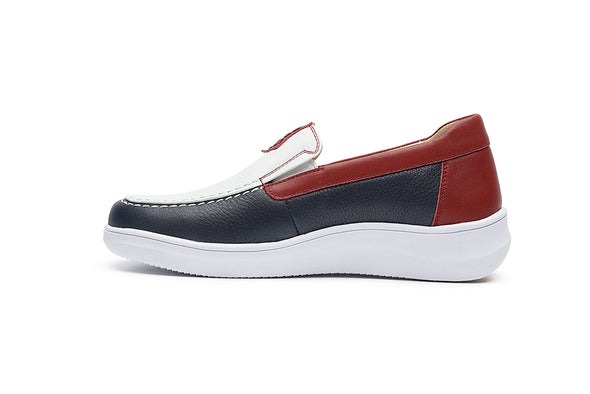 G Comfort 25292 Navy White and Red Ladies Leather Slip On Moccasins