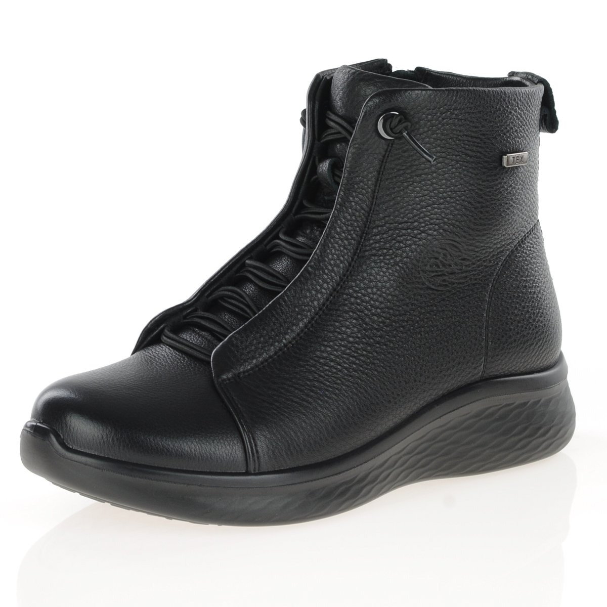 Casual black leather ankle boots with elasticated laces and waterproof TEX membrane from G-Comfort