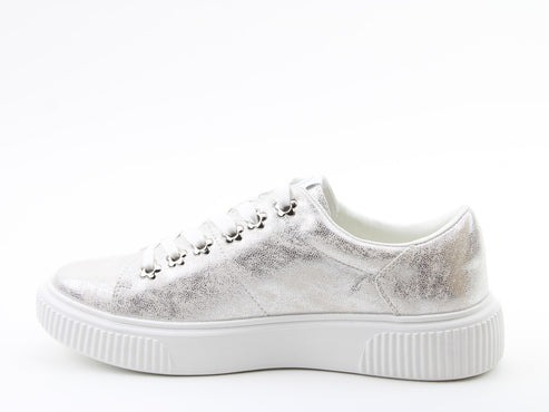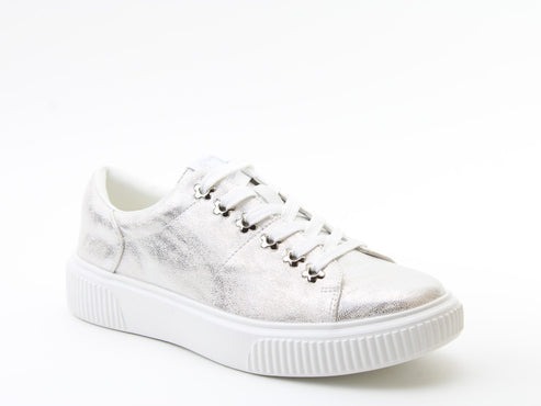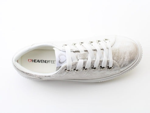 Heavenly Feet Feather Shimmer Ladies Laced Trainer in Silver