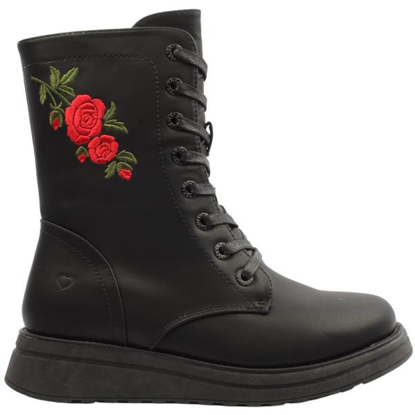 Heavenly Feet Martina 4 Black Rose Ladies Laced 8 Eyelet Ankle Boot