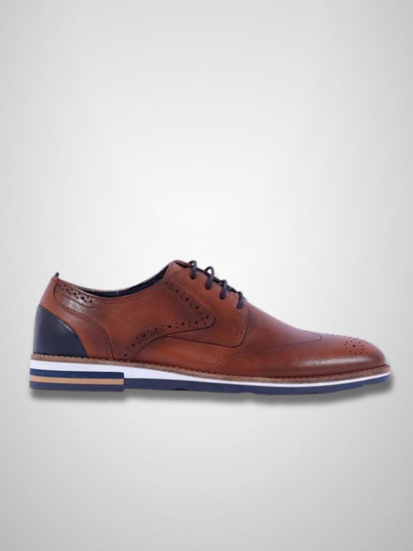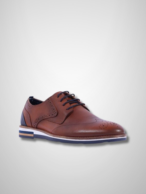 The Brent Pope Darfield - Cognac Dash is a stylish dress shoe with a unique twist. Crafted with a classic design and white detail on the sole, this versatile shoe is perfect for any occasion, from formalwear to casual.