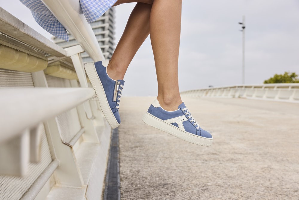 Stay stylish and comfortable with the Rieker Ladies Runners – N9920 in a versatile denim blue finish. This fashionable platform-style trainer offers a modern look while delivering the lightweight comfort Rieker is known for. Designed for ease and practicality, it features a lace-up front with a functional side zip, making it quick and easy to slip on and off while ensuring a secure fit. Inside, the Rieker Soft removable insole provides excellent cushioning and support, ideal for all-day wear and suitable for orthotics if needed.