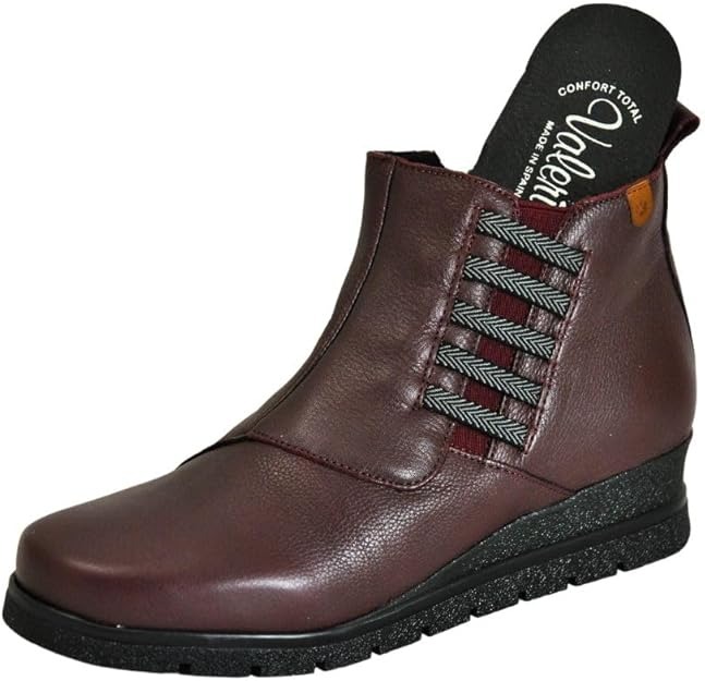 Valerias 9501 Ladies Burgundy Leather Ankle Boot Style and comfort combined with these ladies ankle boots from the Valerias comfort shoes range offering all day cushioned comfort.