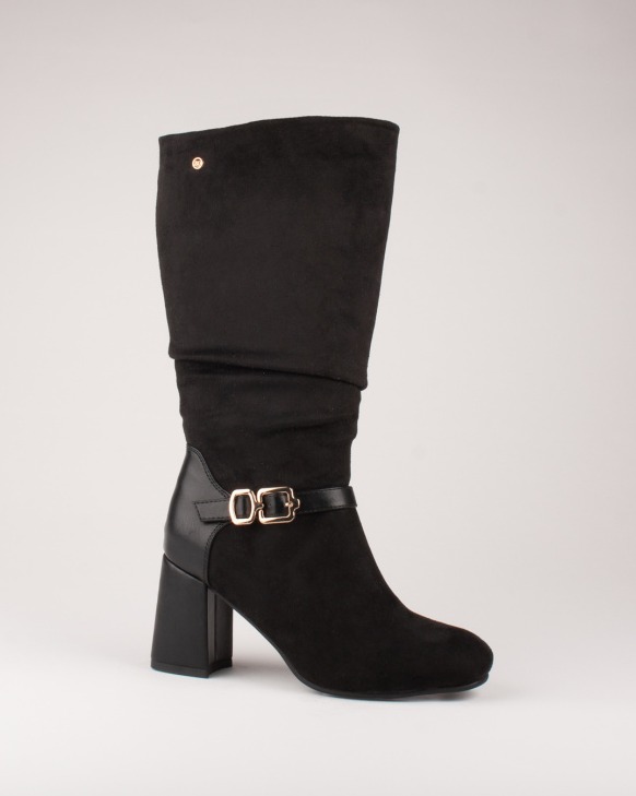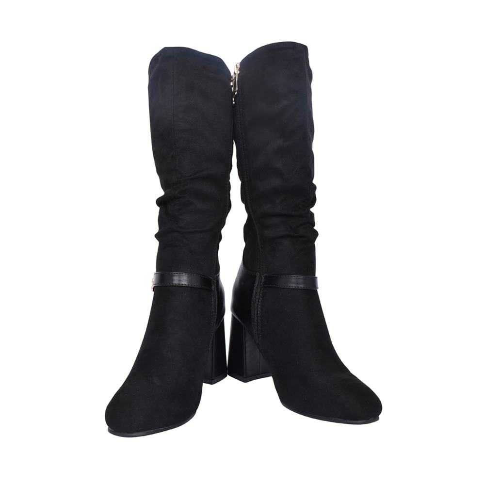 Step out in the sophisticated and stylish, Sidhum calf boot by Zanni. Constructed with a faux suede upper and synthetic leather heel counter, this elegant style features a decorative ankle strap with metal buckle embellishment for added interest. Completing the look is the 80mm block heel with chrome trim which adds height to the design without compromising on comfort.